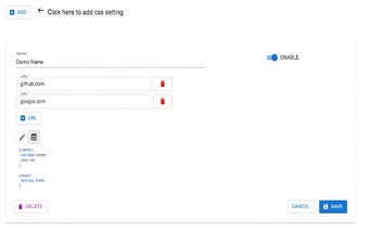 CSS Injector es una extensión de Chrome desarrollada por m.mizukoshi.wakuwaku. Pertenece a la categoría de Navegadores y se clasifica como una subcategoría de Complementos y Herramientas. El programa permite a los usuarios inyectar código CSS personalizado en páginas web específicas.